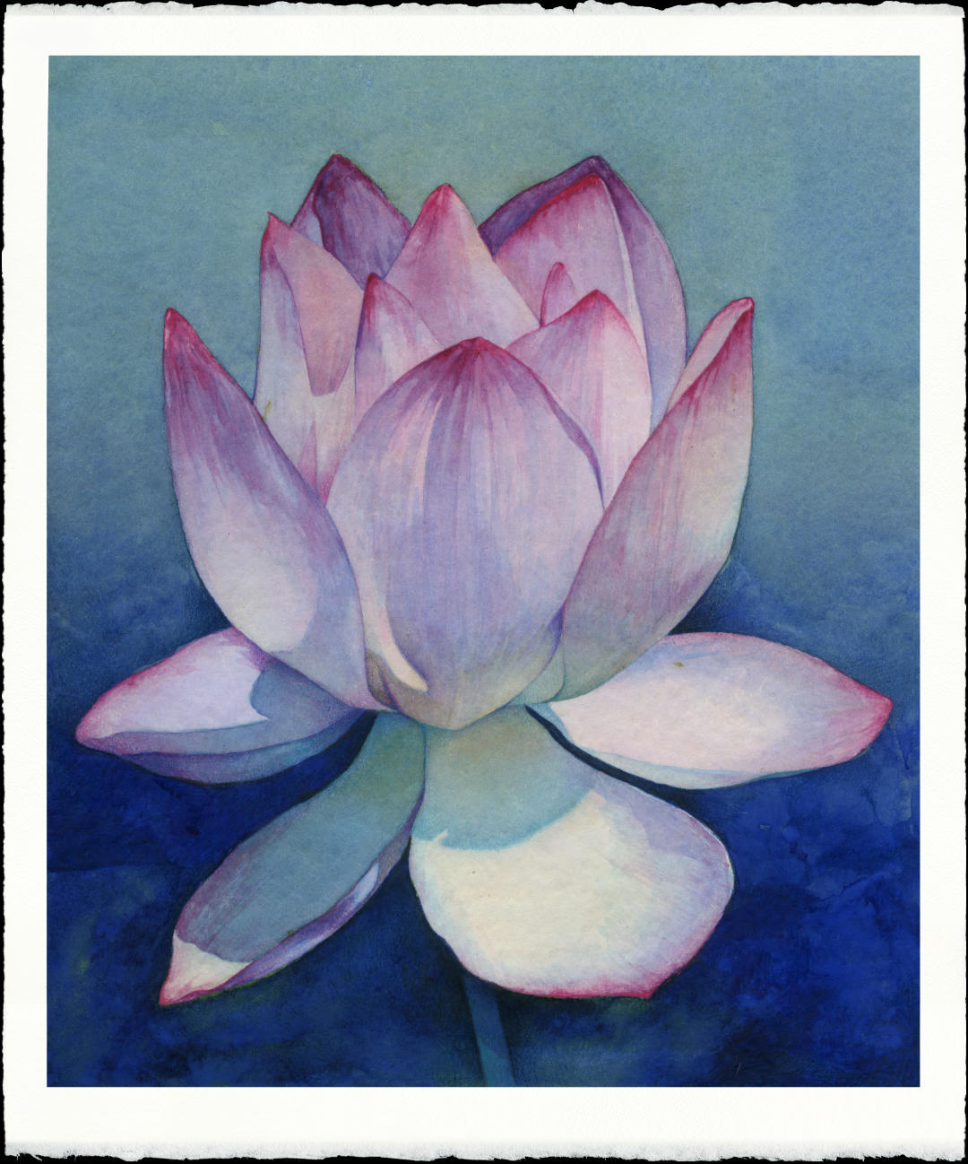 28,5 x 24 cm | Flor de loto. Acuarela en tonos azules y violetas