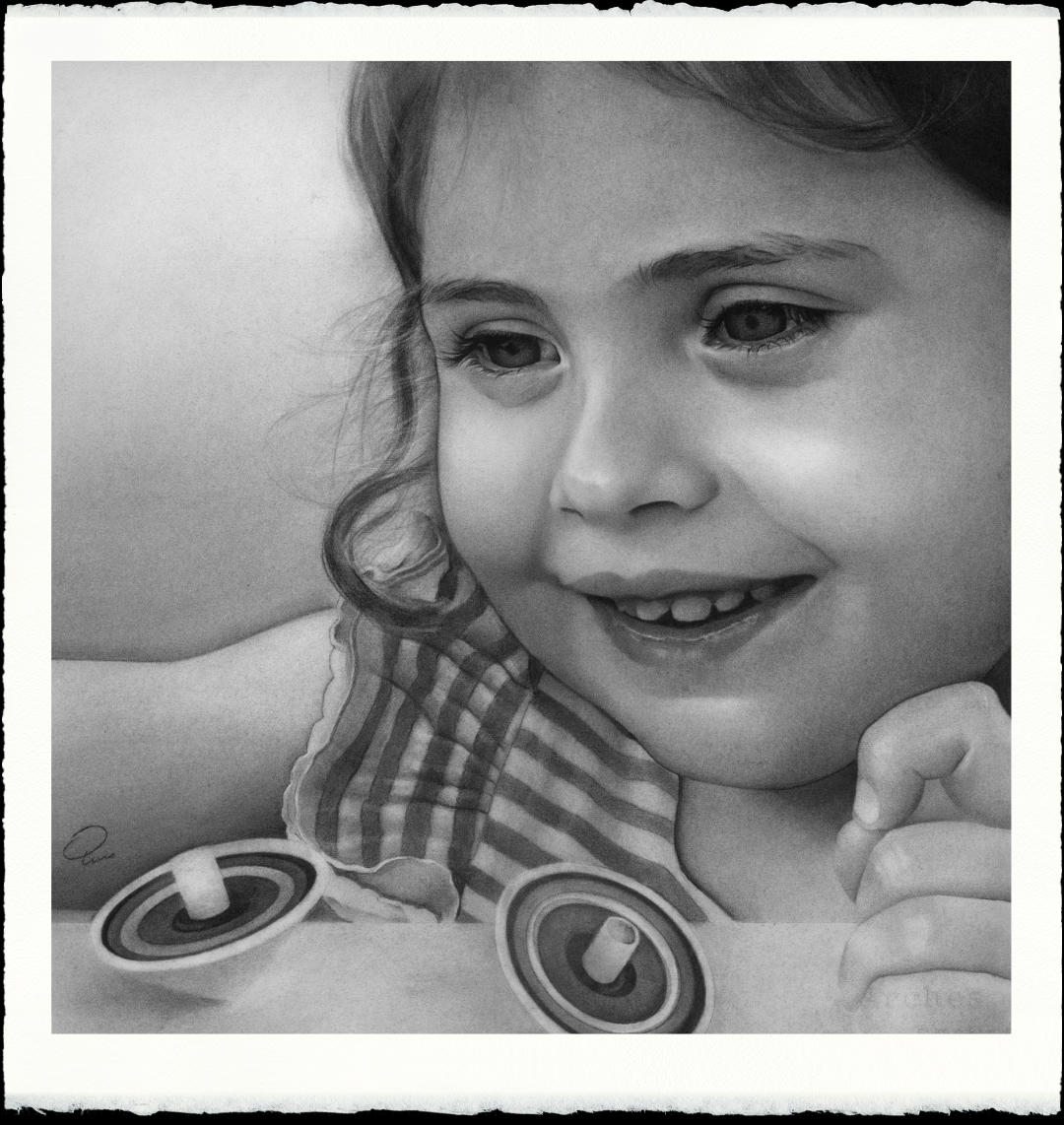 60 x 60 cm · Niña jugando con peonzas